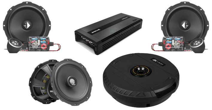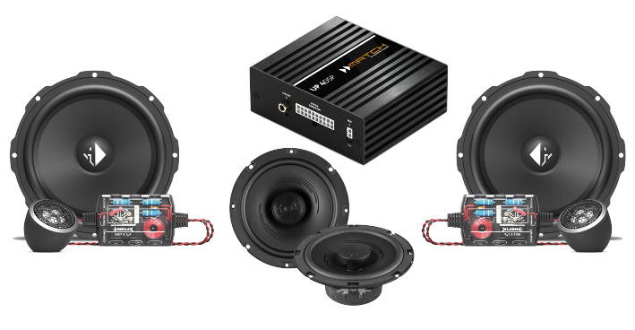 Profesionální montáž kvalitních předních středobasů a výšek Helix Ci3 a zadních koaxiálních reproduktorů Helix PF. Reproduktory usazujeme do přesných podložek pro konkrétní vozidlo. Zapojení všech reproduktorů na čtyřkanálový zesilovač Match UP 4DSP a jeho kompletní naladění na míru zákazníka.