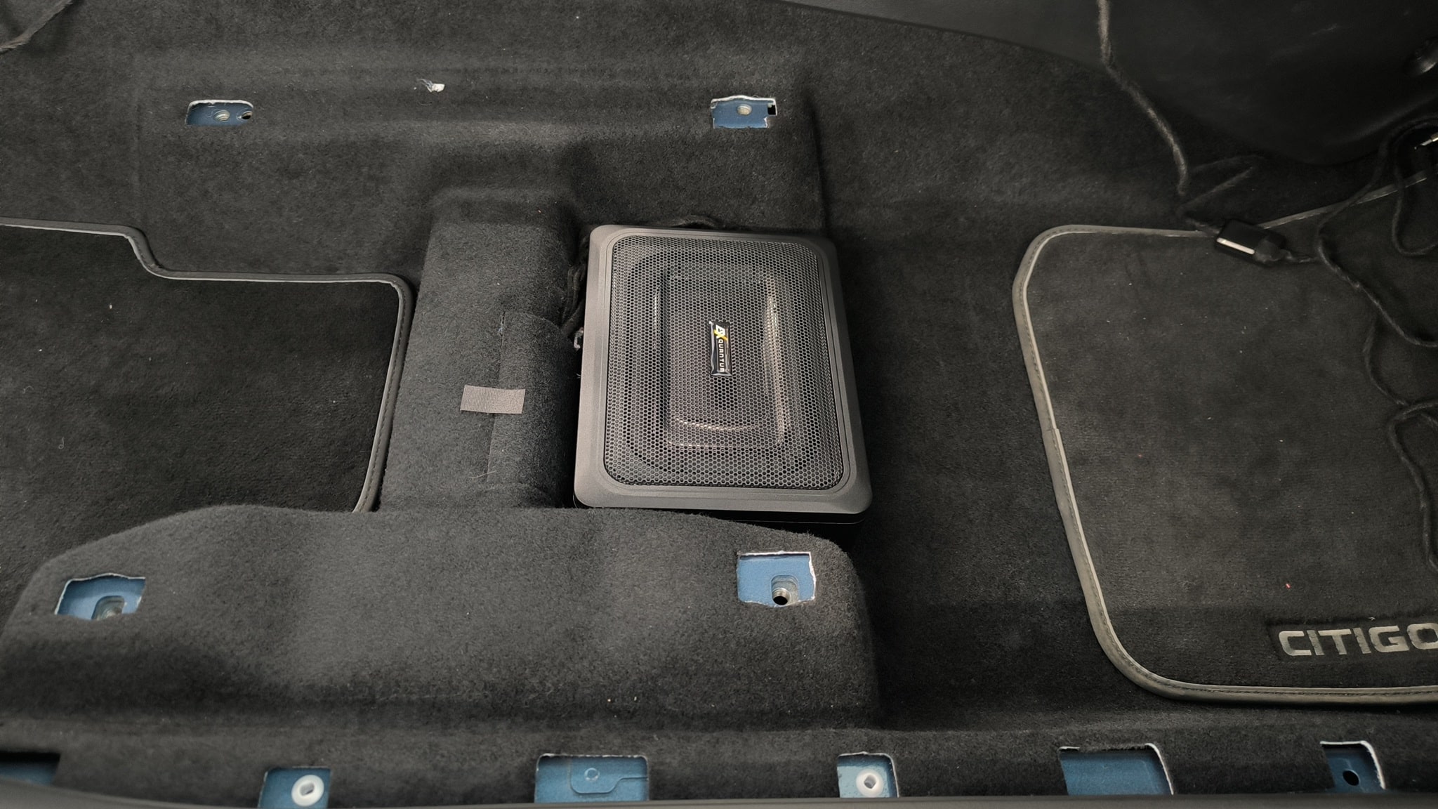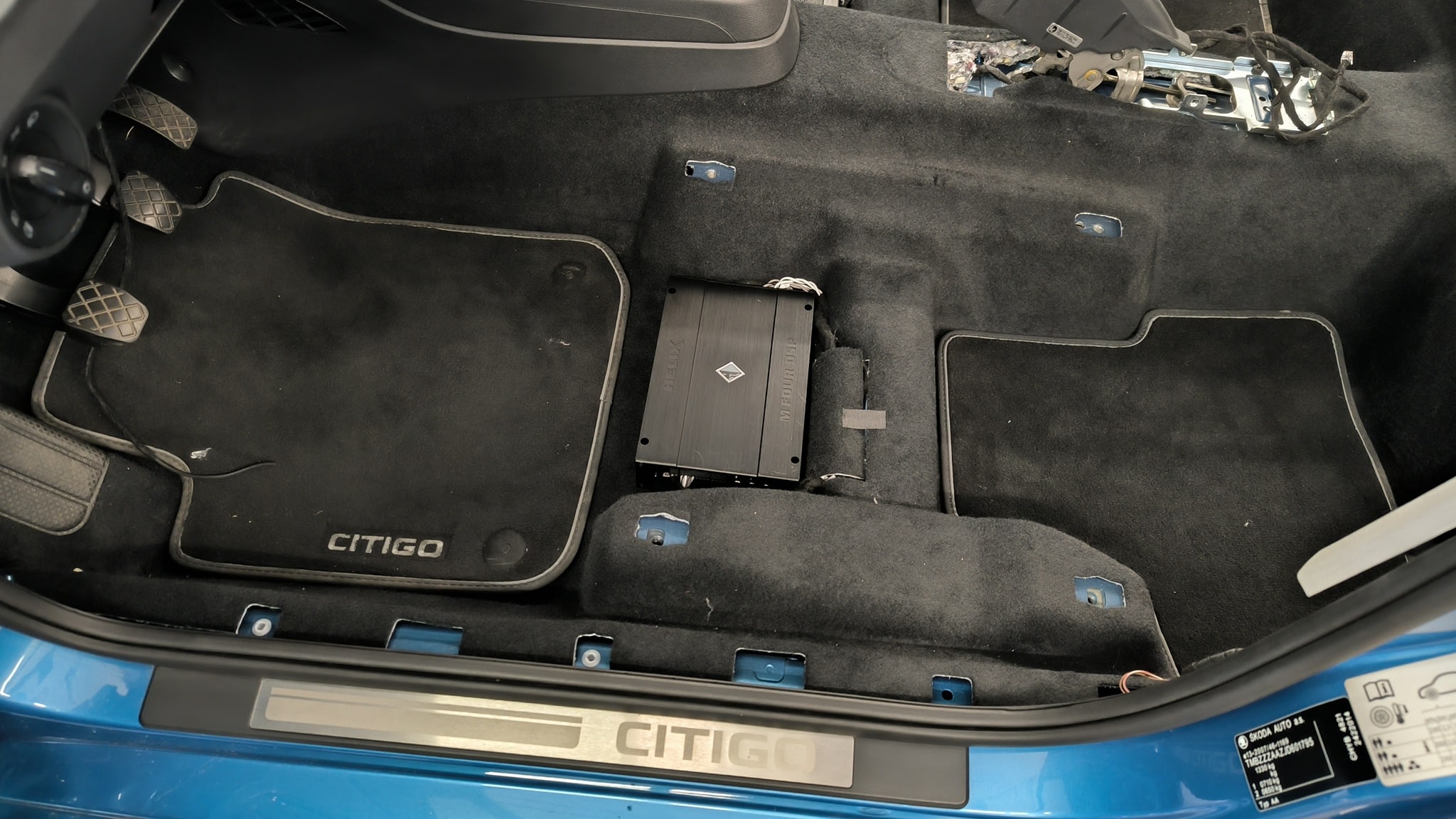 Toto Citigo bylo z výroby jen chudě nazvučeno, Nemělo ani výškové reproduktory, takže o detailech, zábávě ani emocích nemohla být řeč. Majitelé se Citigem velmi rádi jezdí a tak chtěli zvuk významně pozvednout a cesty si více užít. Domluvili jsme se na osazení dvoupásmového aktivního systému Helix Ci3, zesilovače Helix M Four DSP a subwooferu pod sedadlo ESX. Díky DSP procesoru a jeho kompletnímu odladění, nastavíme každému zákazníkovi auto přesně na míru reproduktorů, jejich umístění a hudebního vkusu. Výsledkem je objemný a detailní zvuk, který předčí většinu audiosystémů i v mnohem dražších vozech.